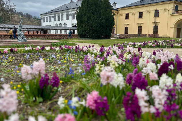V zámecké zahradě už rozkvetly magnolie, tulipány i sbírka narcisů a rozvoněly se záhony hyacintů a rozhodně stojí za to ji navštívit.